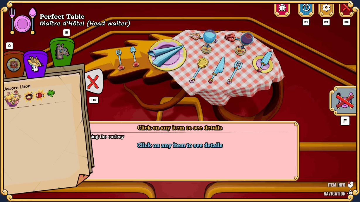 Welcome to Etiquette Elegance — a temple of refinement and impeccable service. Tailor the dishes to your guests' tastes, set the tables to perfection, and create an atmosphere of exquisite elegance. But beware: the slightest mistake and perfection will be lost. Can you achieve perfection and become a legend of the gastronomic club?